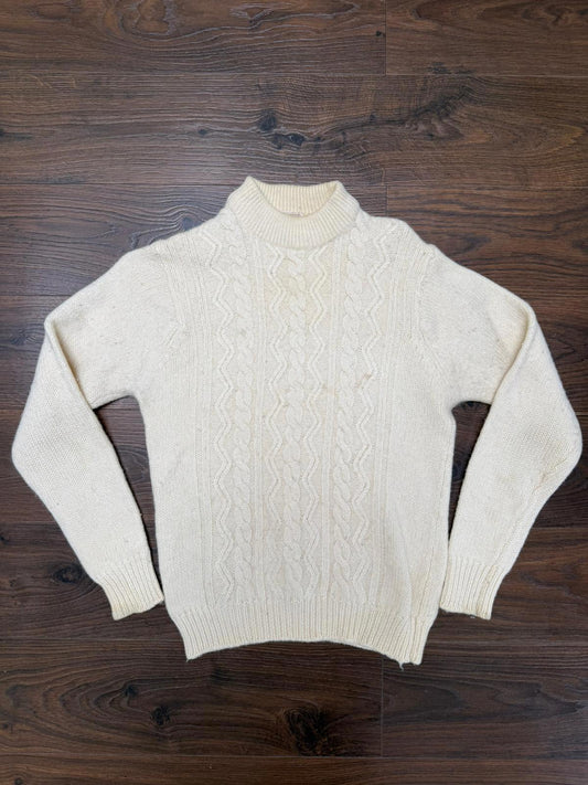 Visor Empire Mens Vintage 100% Wool Cable Knit Pullover Jumper - S/Small -Cream