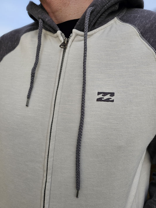 Billabong Pullover Grey/White Hoodie Full Zip Jacket - L/Large