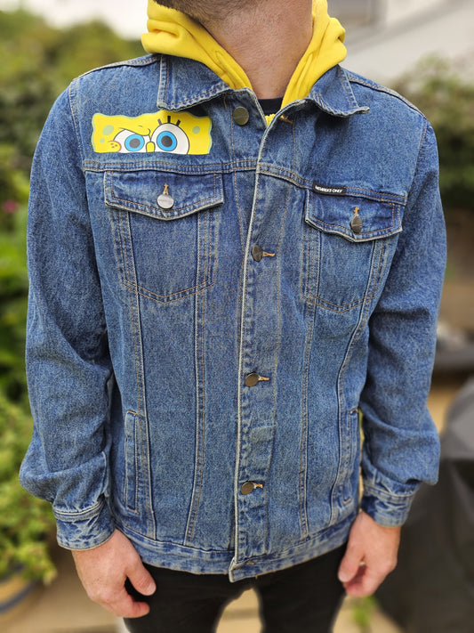 Rare Members Only X Nickelodeon X Sponge Bob Hoodie Denim Jacket - L/Large
