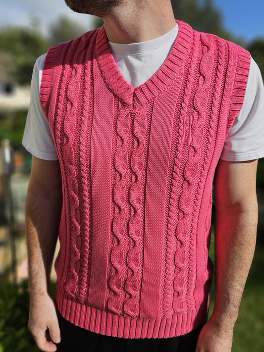 Home Grown Pullover Pink Cable Knit V Neck Vest - M/Medium - RRP £60