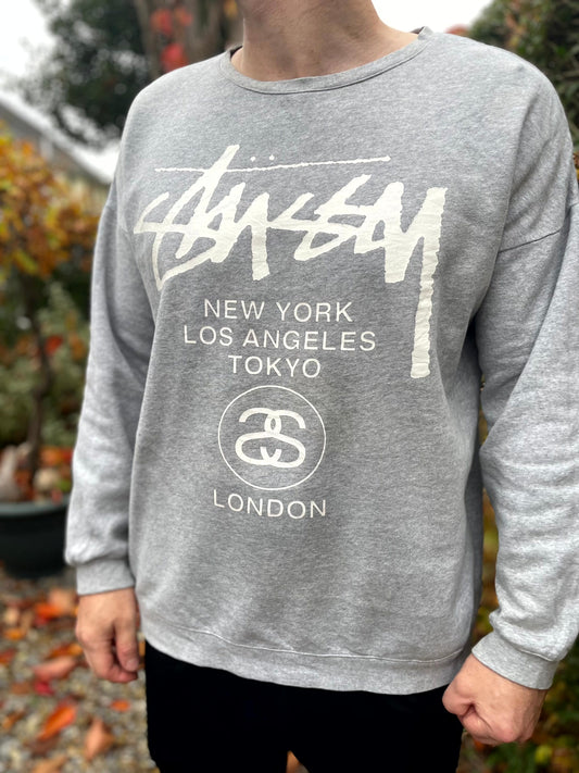 Stussy Big Spellout Grey Pullover Pullover Sweatshirt Jumper - M/Medium