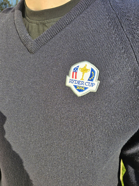 Glenmuir Navy Blue 1981 Ryder Cup V Neck Sweater Jumper - M/Medium 80% Lambswool