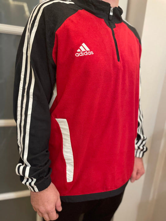 Vintage Adidas Red/Black Pullover 1/4 Zip Fleece Jumper/Sweatshirt Pullover - XL/Extra Large