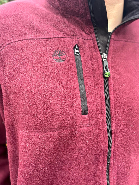 Timberland Embroidered Burgundy Full Zip Fleece Jacket - XXL/Extra Extra Large/ 2XL