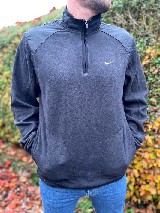Vintage Nike Silver Tag 1/4 Zip Fleece Pullover Jumper Black - L/Large
