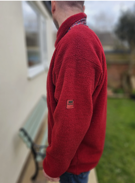 Vintage Helly Hansen Equipe 1/2 Zip Pullover Fleece Jumper - L/Large - Deep Red