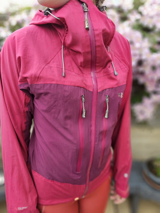 Womens Rab full zip hooded waterproof rain coat/jacket - UK 8 - Pinky/Red