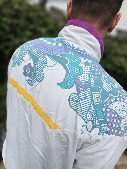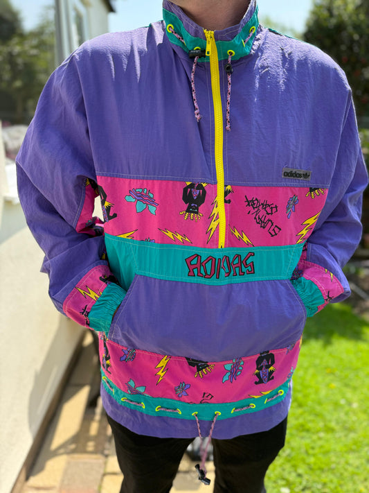 Vintage Adidas Tiki Style Full Zip Windbreaker Track Jacket 80s 90 - L/Large