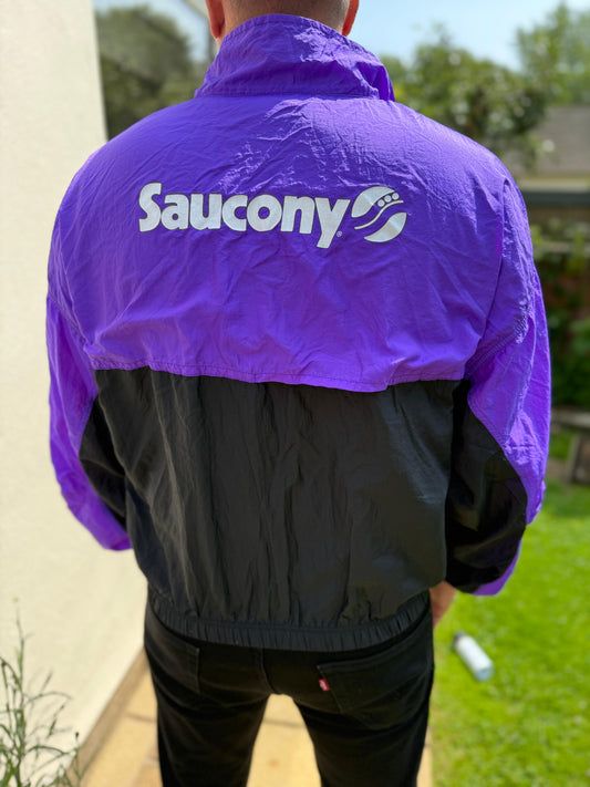 Vintage Saucony Made In USA Unisex Track Jacket Windbreaker Purple - XL/Extra Large