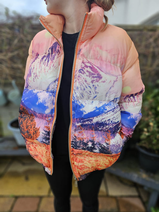 Women's Nasty Gal Mountain Print Puffer Jacket Coat - 8/10