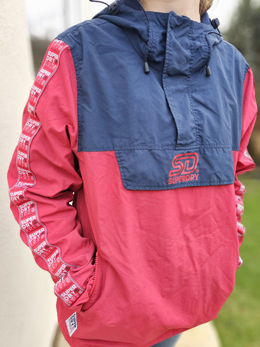 Superdry Red/Navy Pullover Hoodie Anorak Jacket Windbreaker Half Zip - 12/L/Large