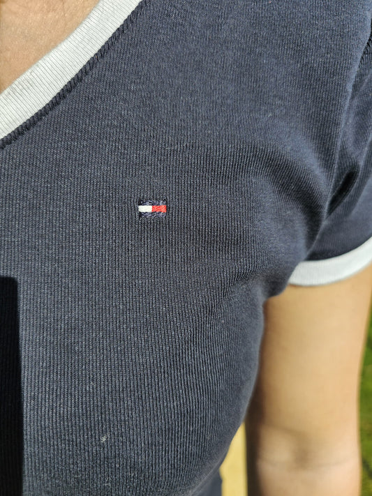 Tommy Hilfiger Black Women's V-Neck Flag Short Sleeved T-Shirt - M/Medium/10