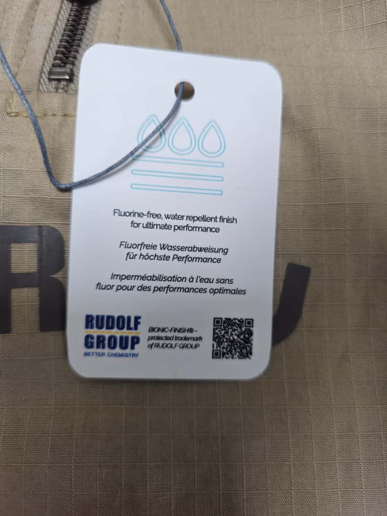 The jacket also packs away into itself to become a cross body bag for easy carrying.