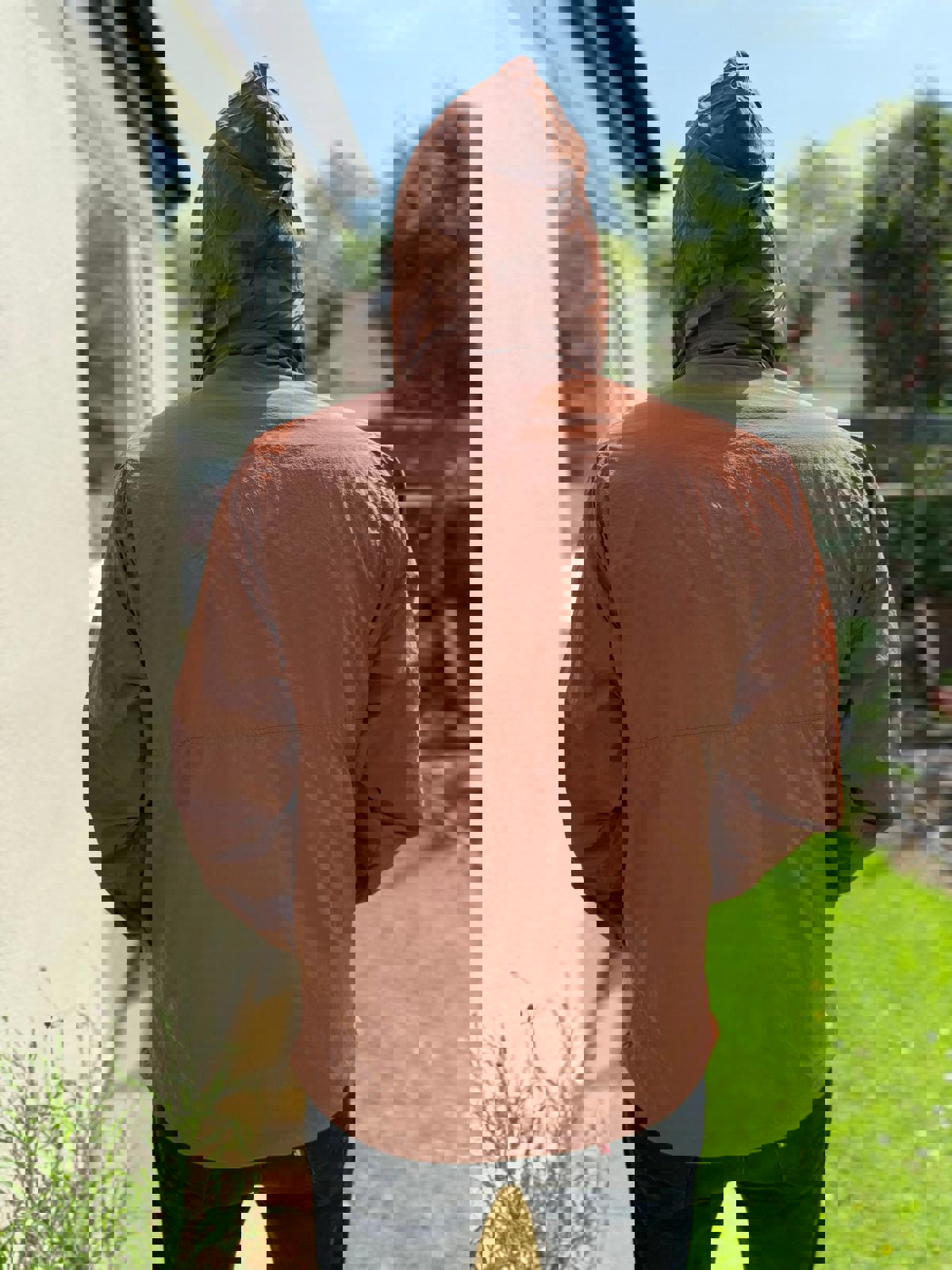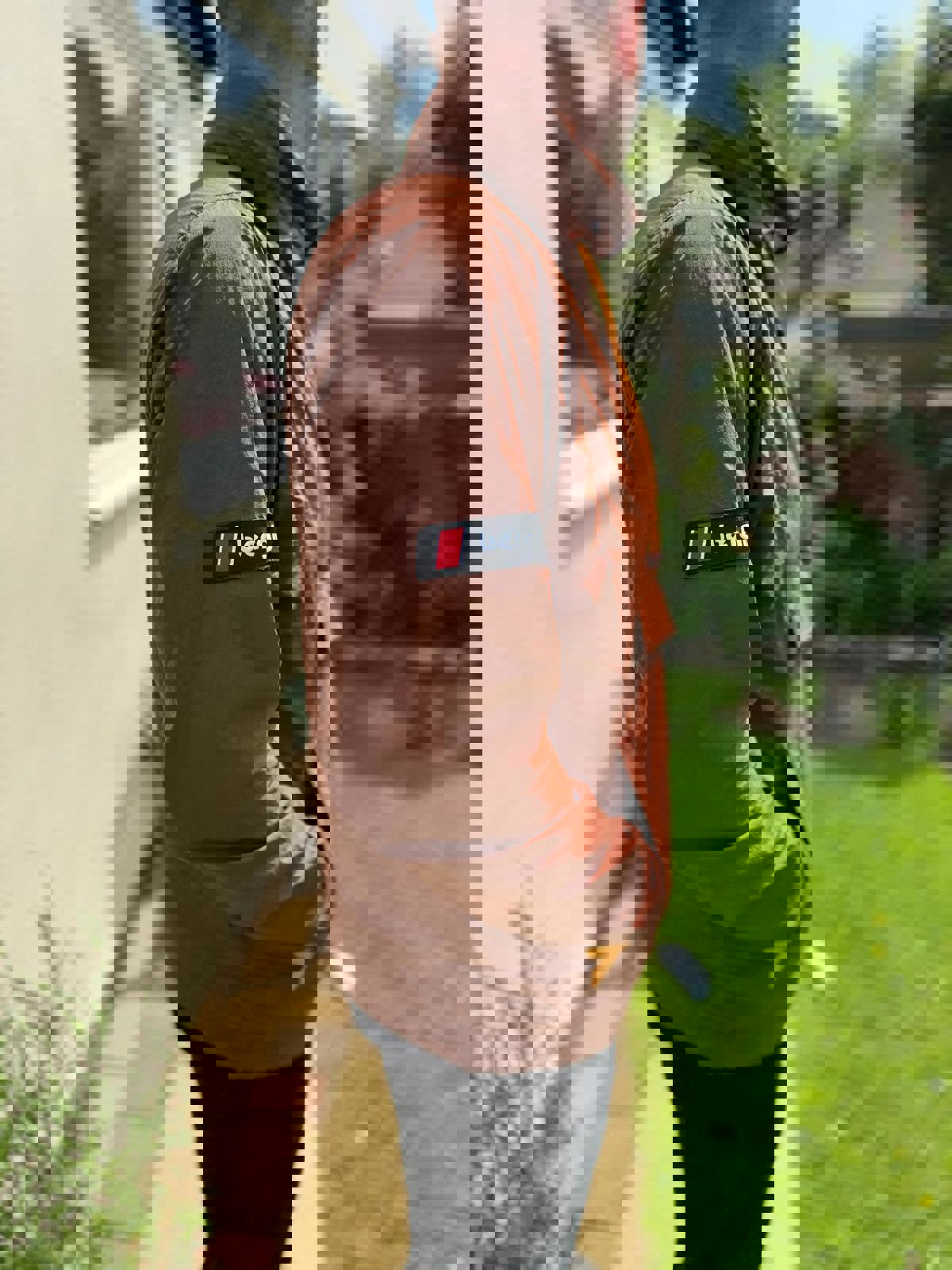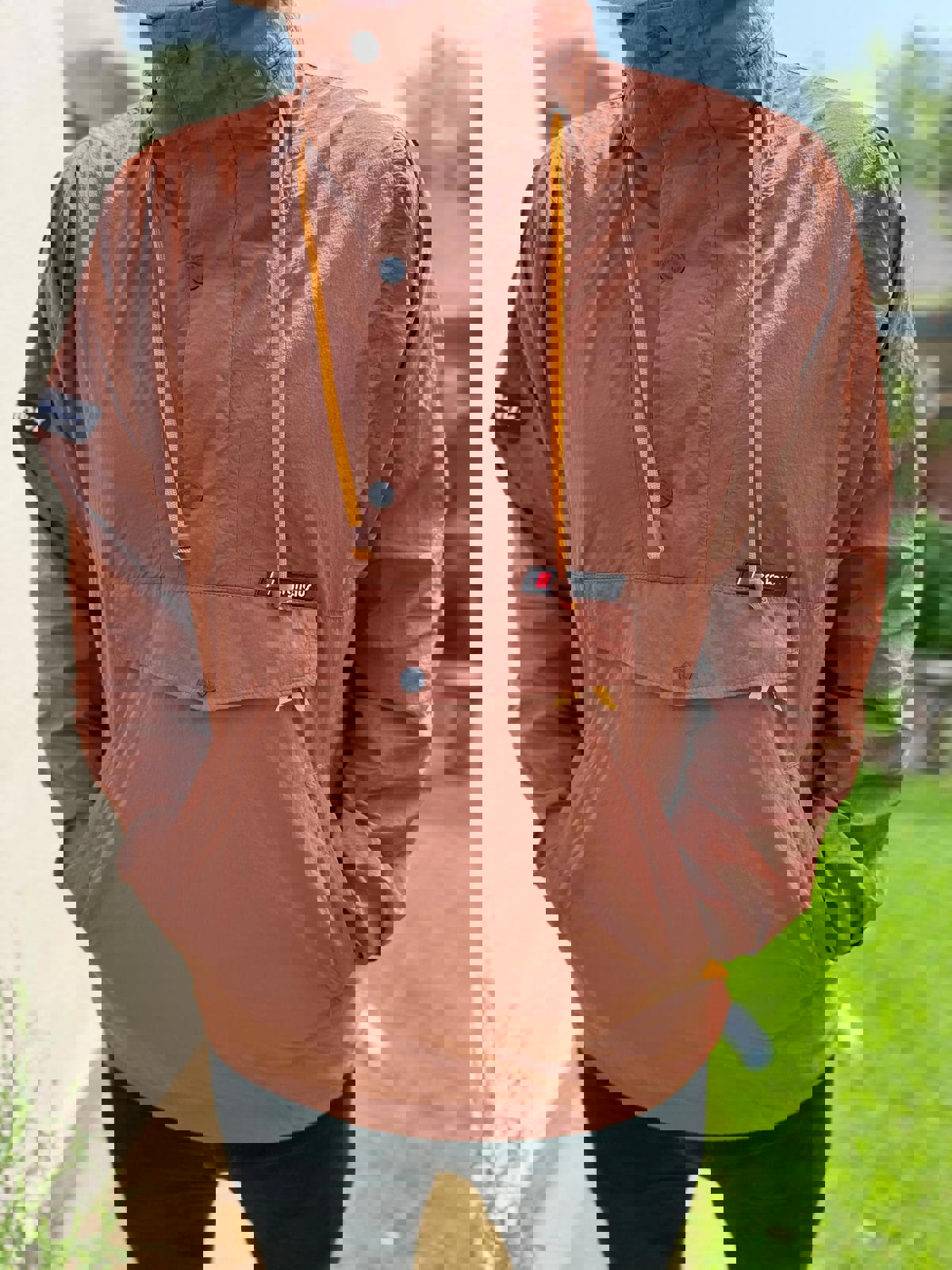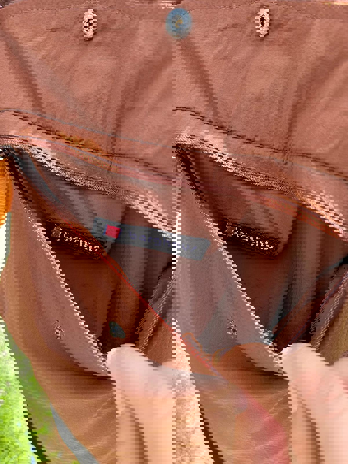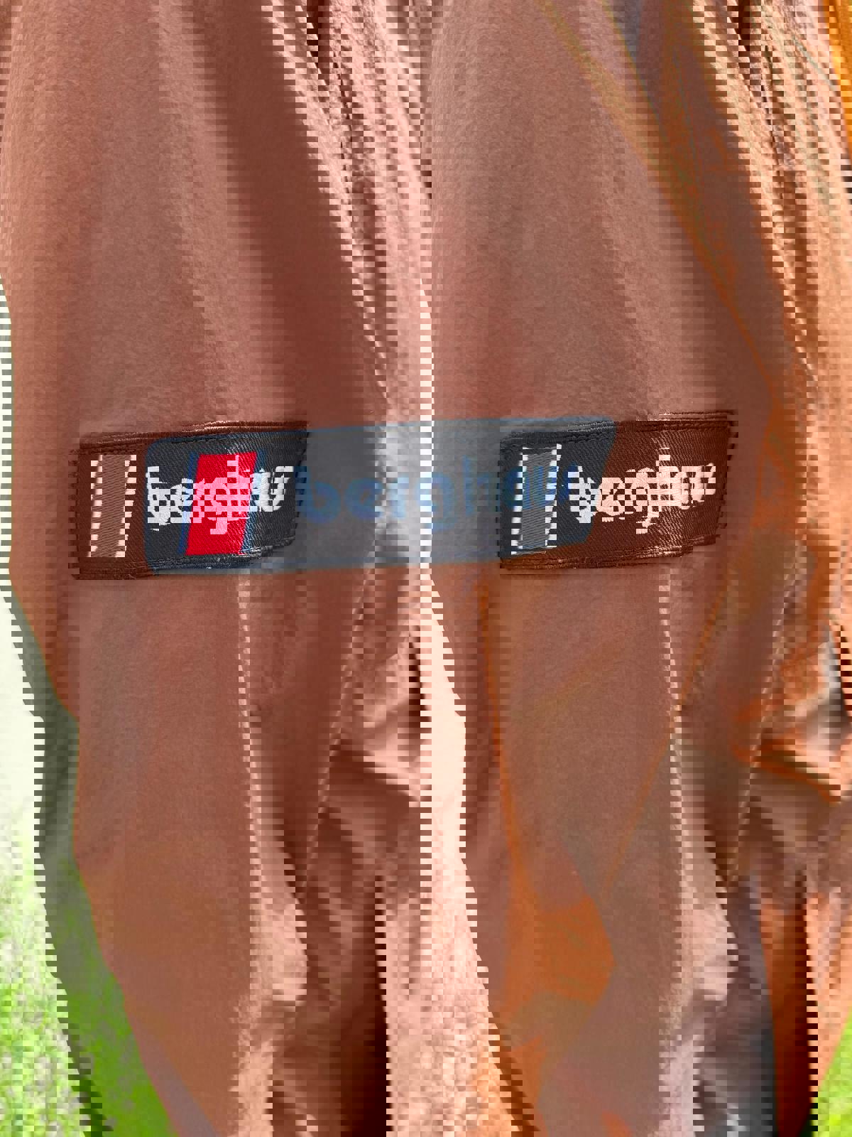 Berghaus pullover multi-season 1/2 zip windbreaker jacket that packs away for easy carry and has a rollaway hood.
