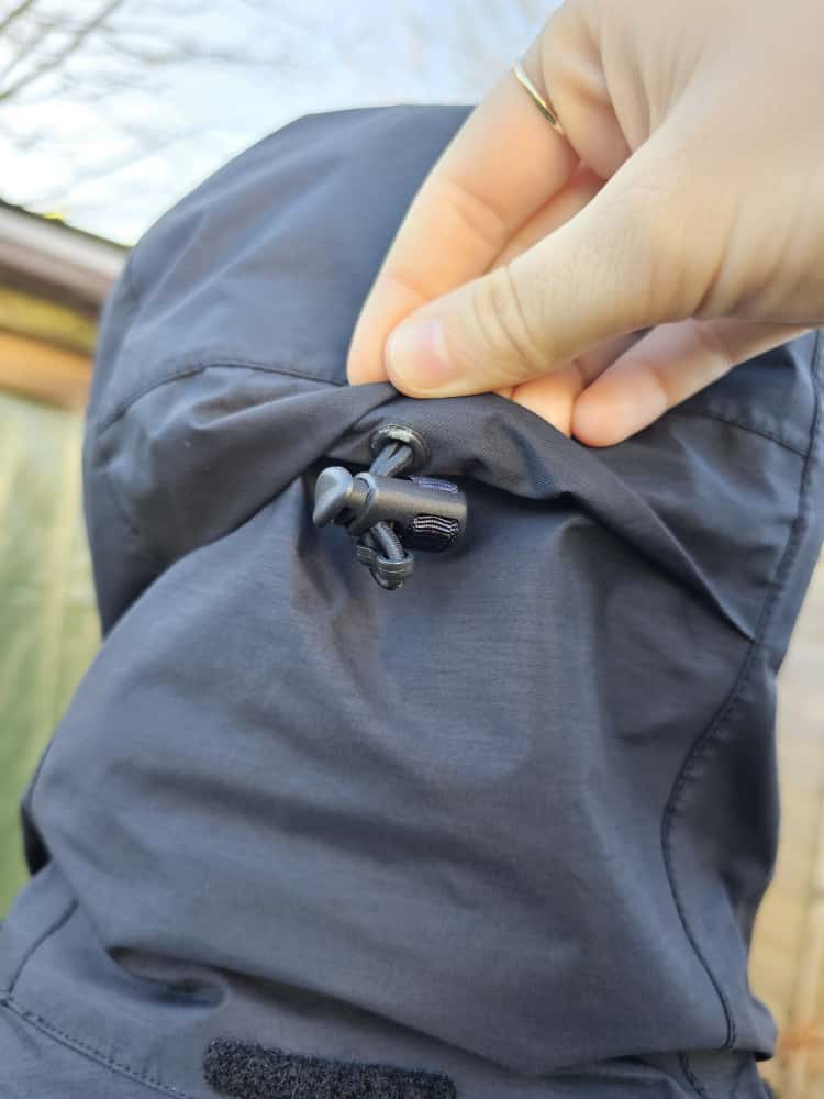 Zip hand, and chest pockets, internal zip pocket under storm flap, adjustable hem and hood.Β