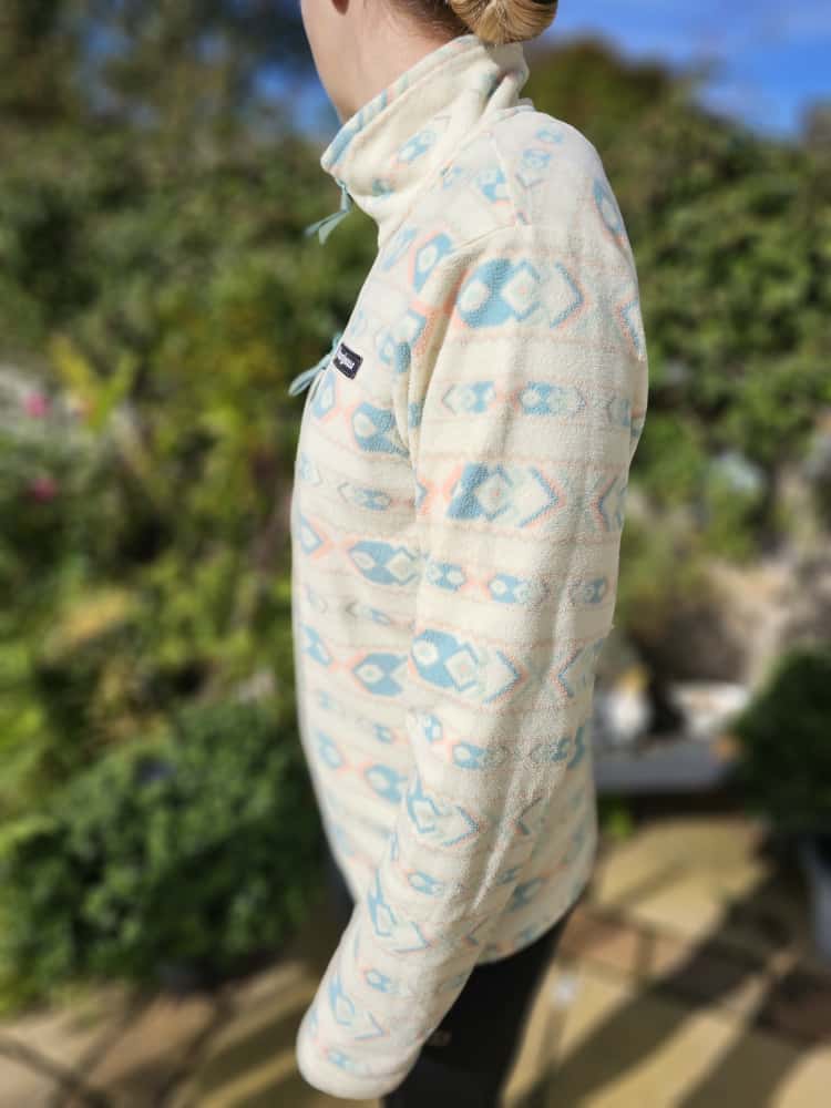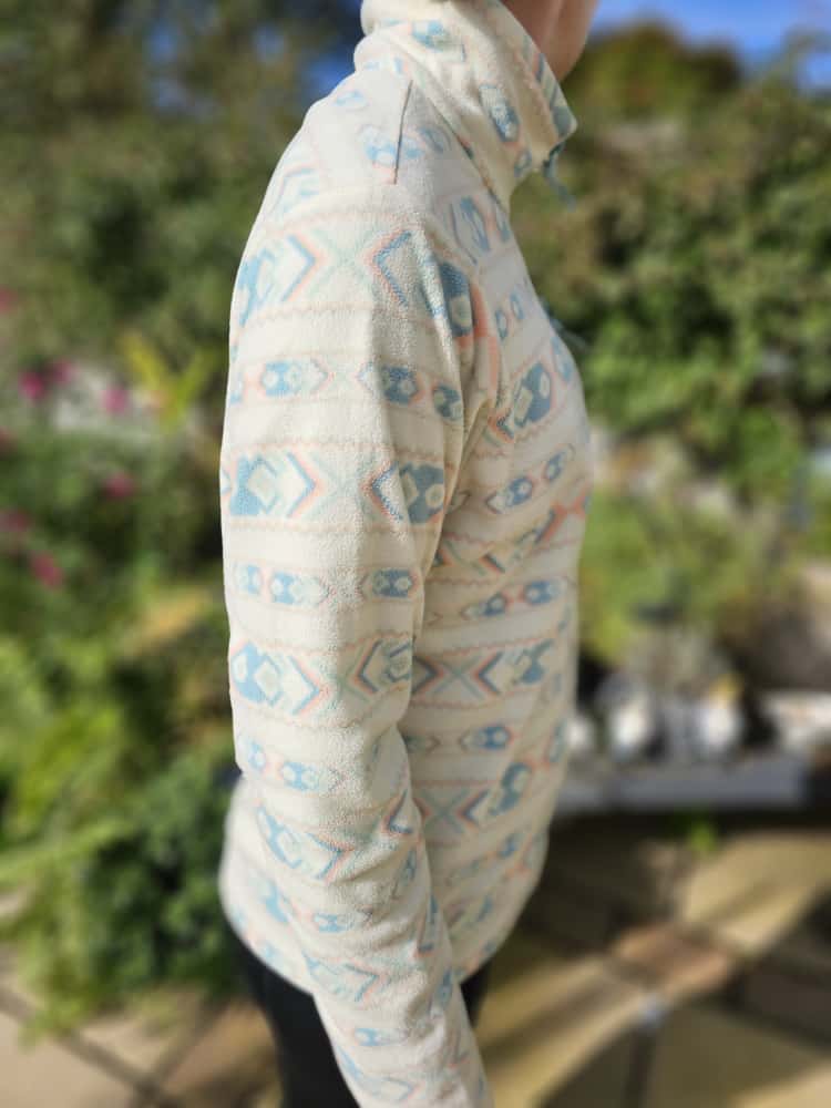 Take this on your next adventure in the hills, or out on a dog walk. This a versatile fleece with a lovely Aztec printย