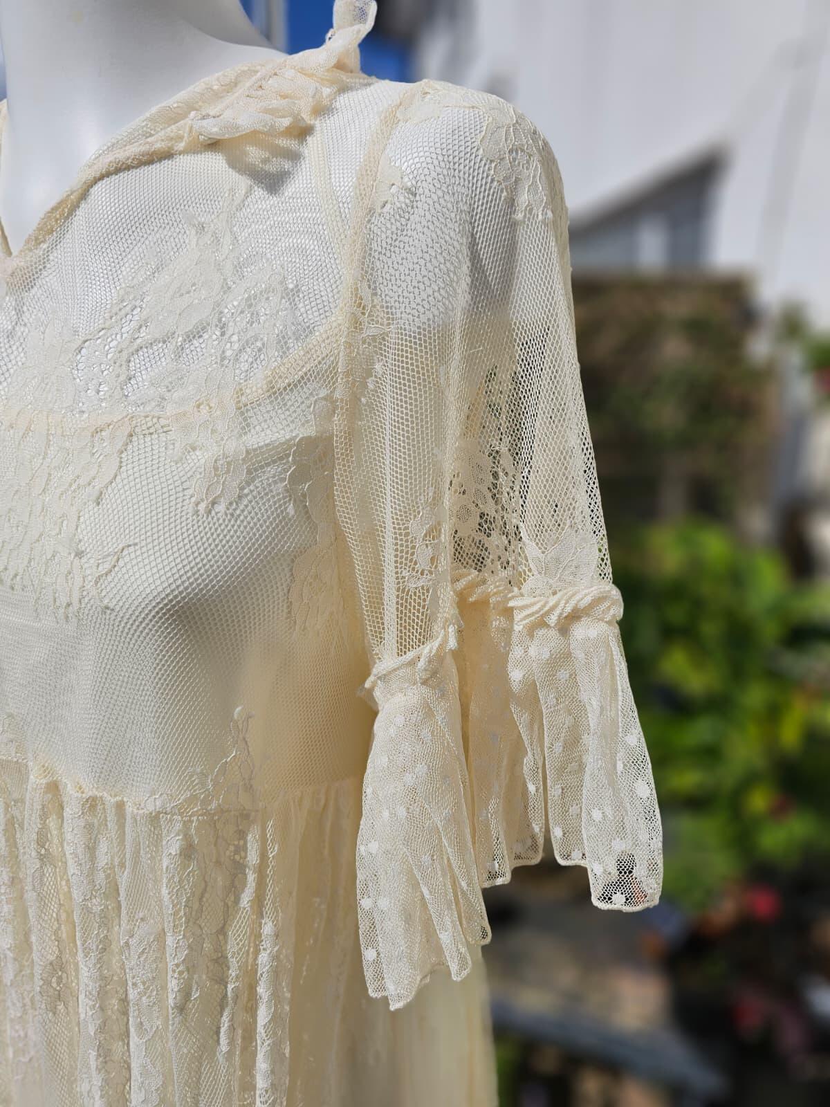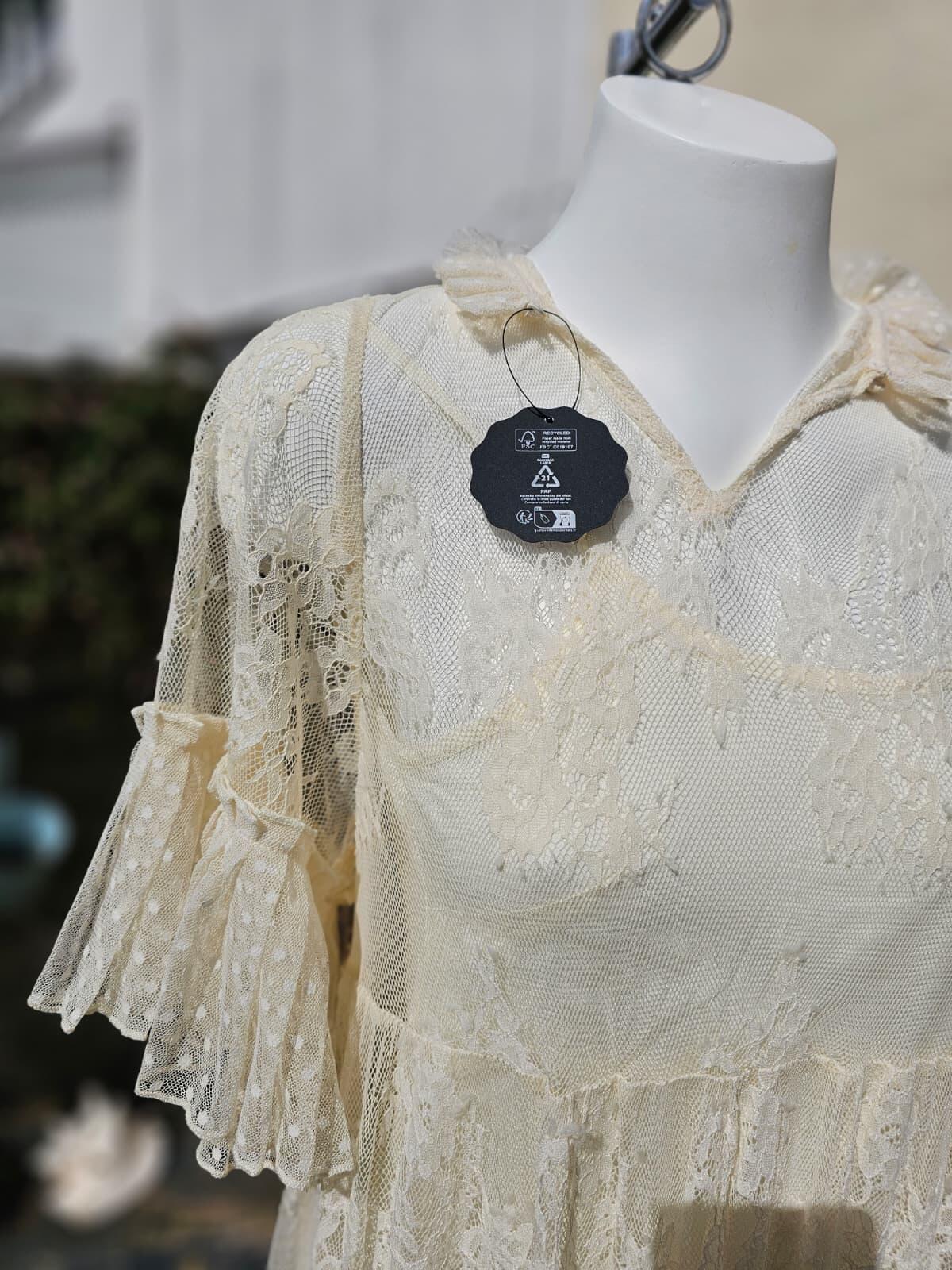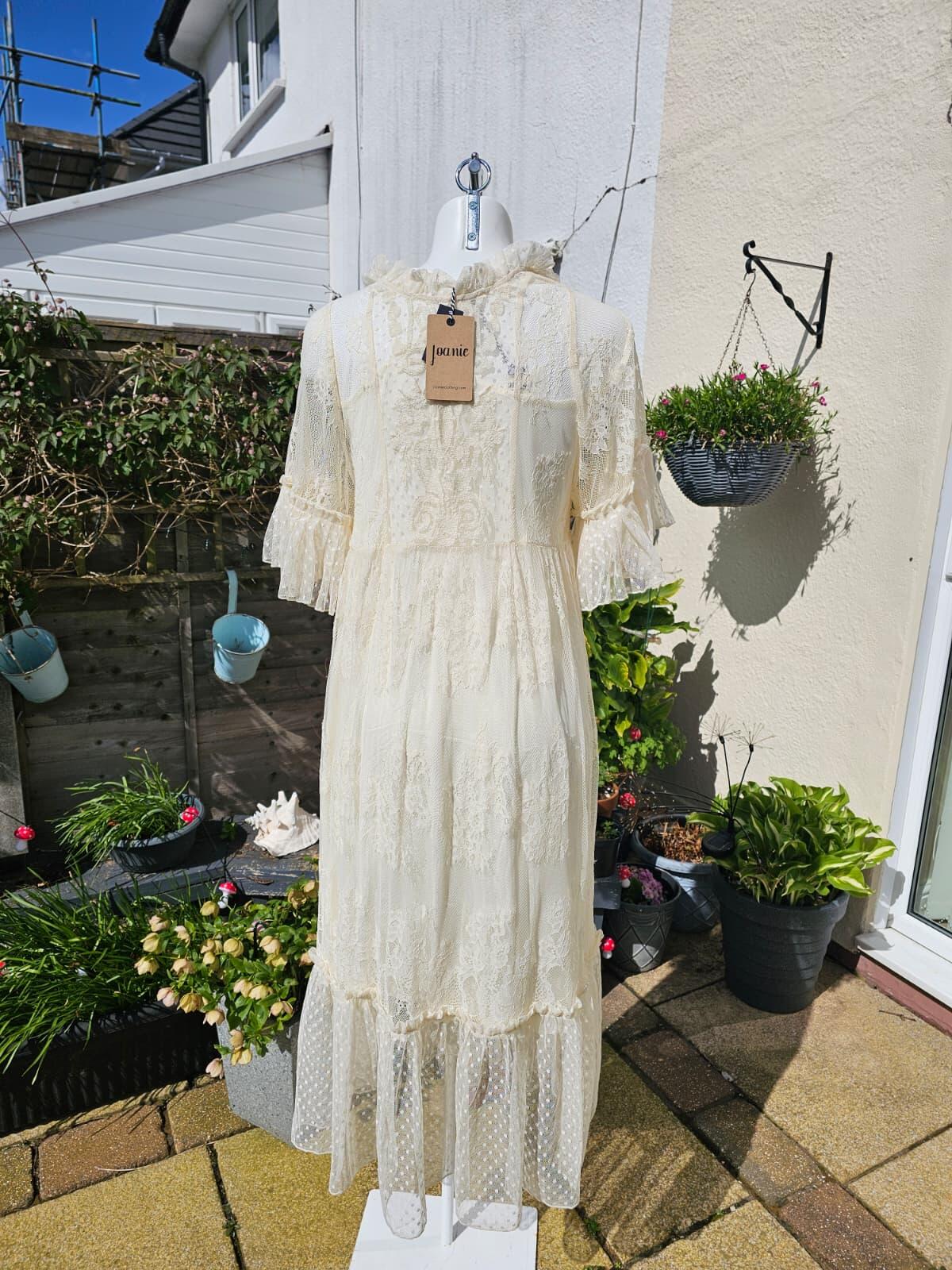 Joanie Havisham High Neck Lace Midi Dress with Ruffle Sleeves and Collar - S/8