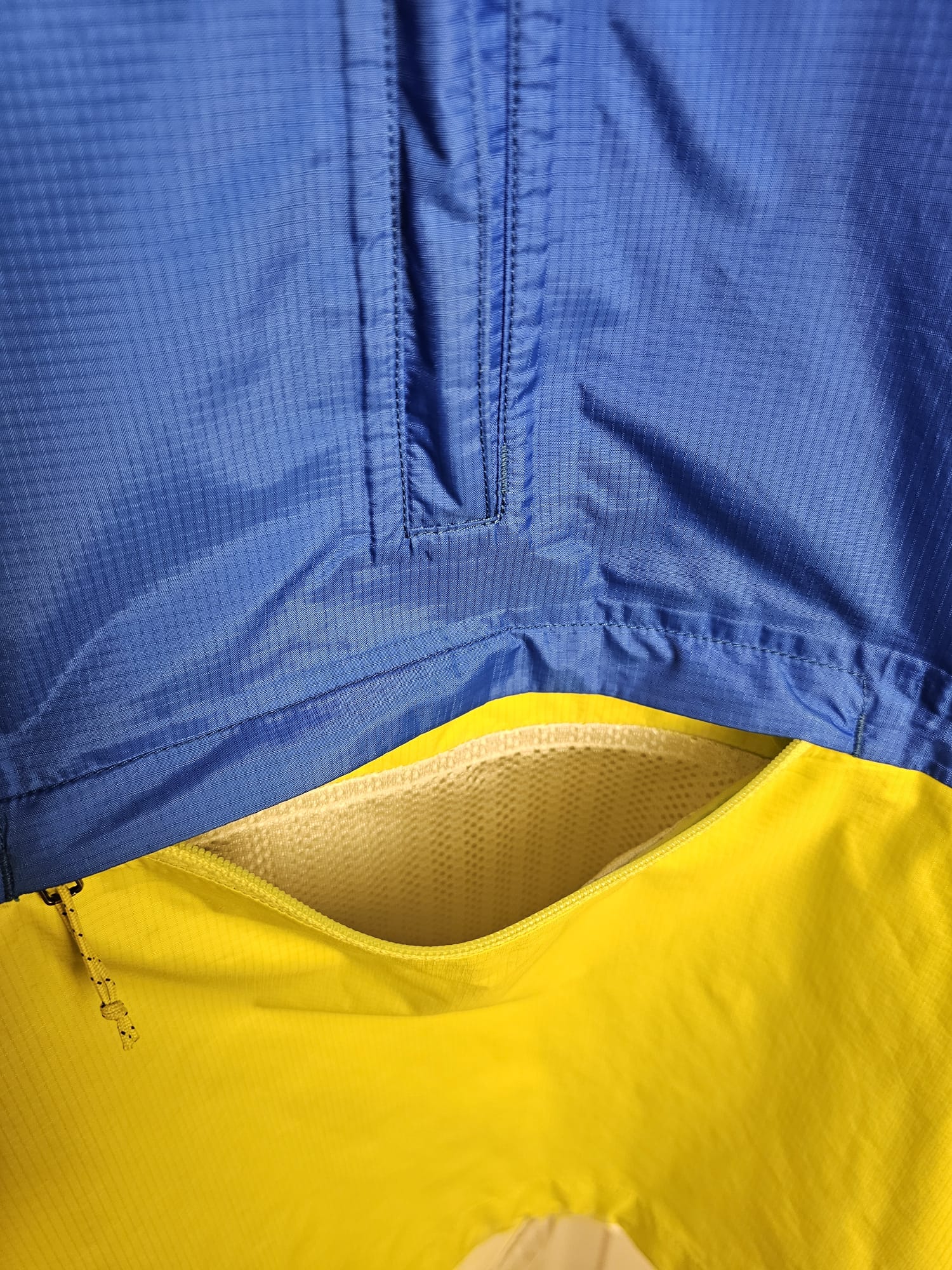 Handy 'kangaroo' style zip pocket (the jacket also folds into this pocket), cinches at the hem, rear hood and collar (for the hood).