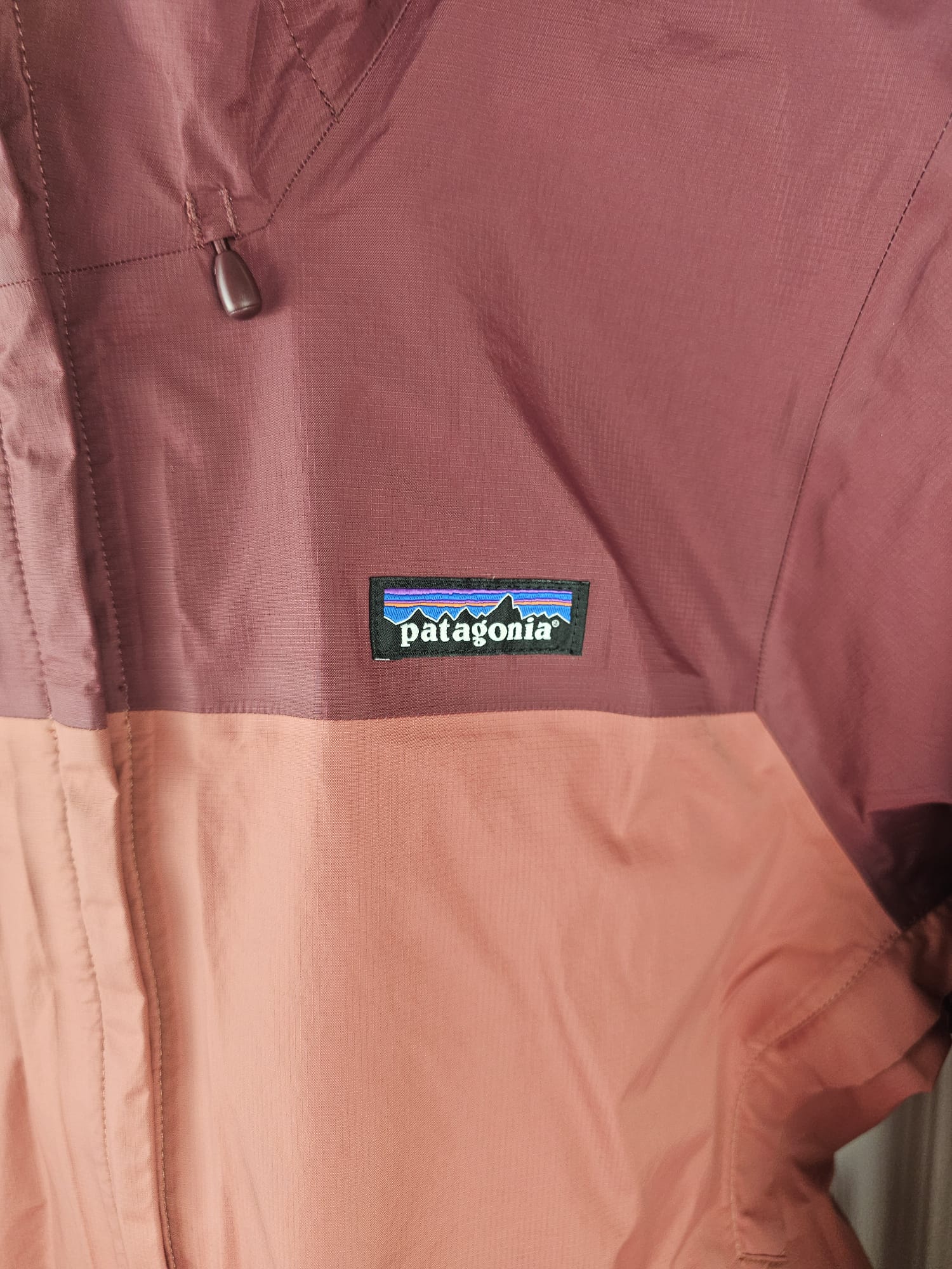 Self-fabric hook-and-loop cuff closures and an adjustable drawcord hem seal out precipitation
