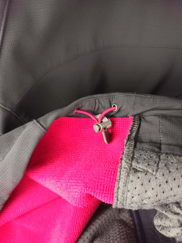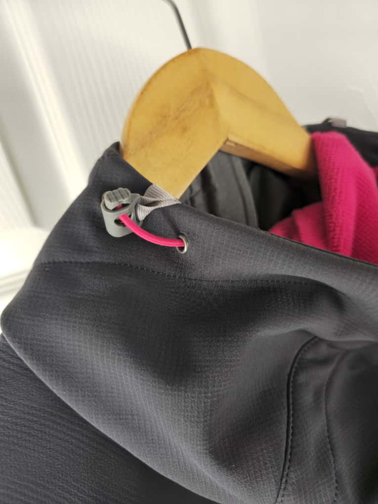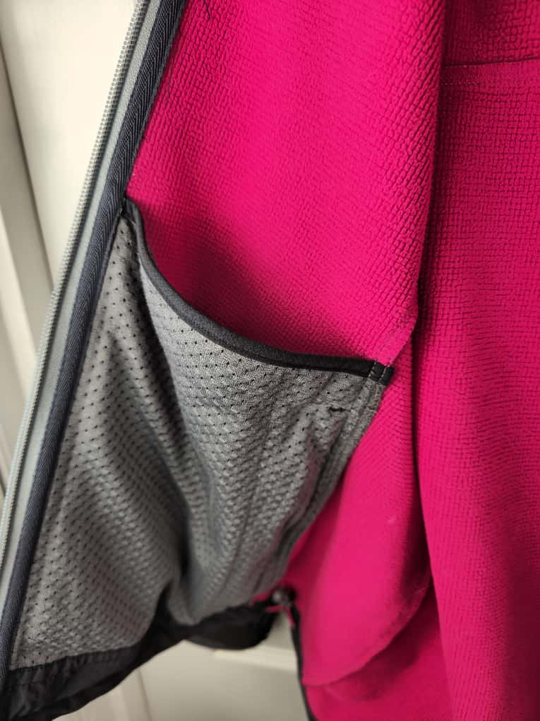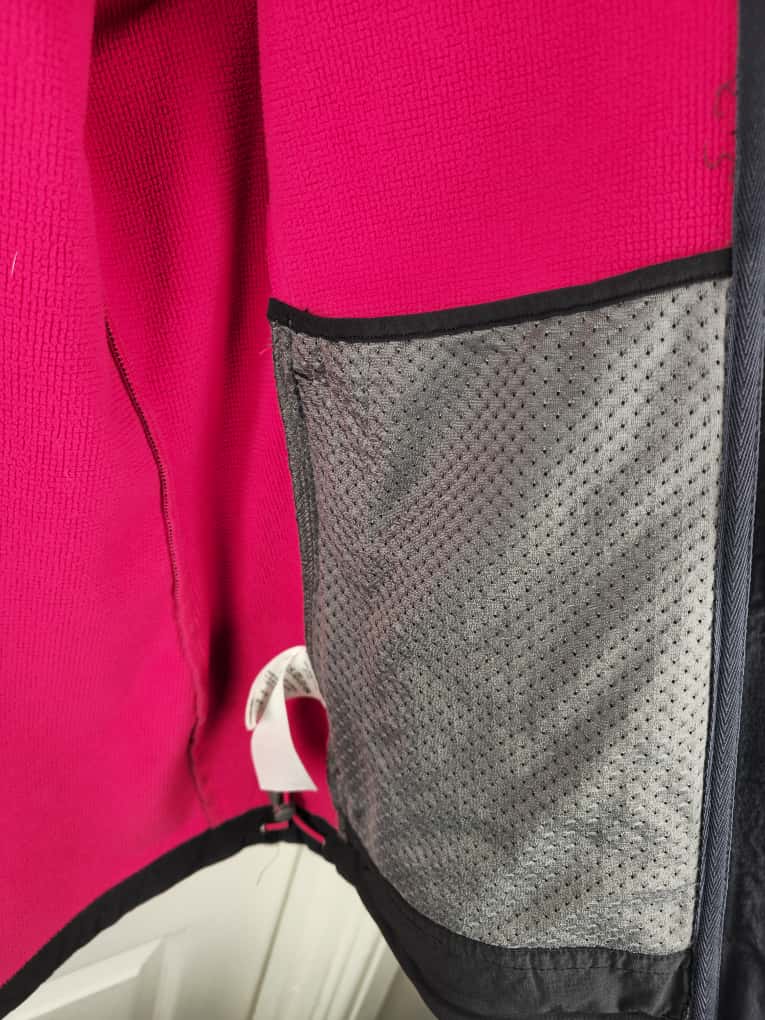 Stretch nylon face with a polyester grid fleece back